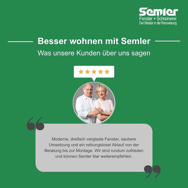 Das Motto bei Semler lautet: „Jetzt renovieren – jahrelang profitieren“. Bei Semler finden Kunden immer die richtige Lösung für behagliches sicheres Wohnen und bietet langfristigen Werterhalt Ihrer Immobilie. Weitere Informationen gibt es im Internet unter: www.semler-fenster.de