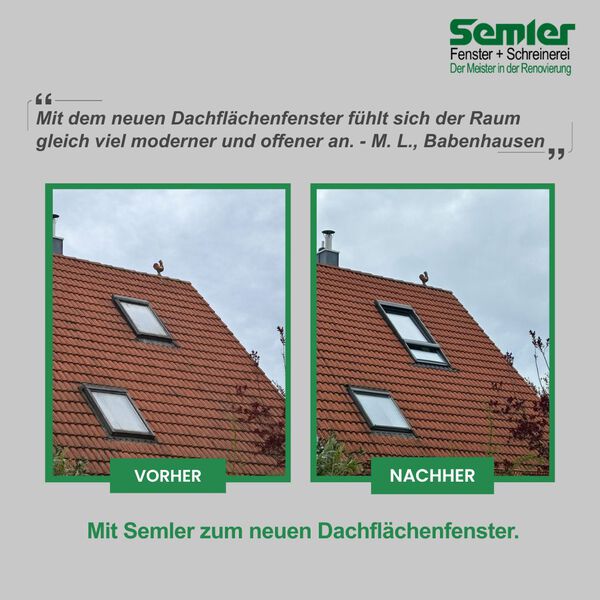„Mit dem neuen Dachflächenfenster fühlt sich der Raum gleich viel moderner und offener an.“ — M. L., Babenhausen